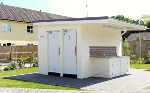 Outdoor washing up sinks with hot and cold water, fresh water points, chemical toilet disposal point.